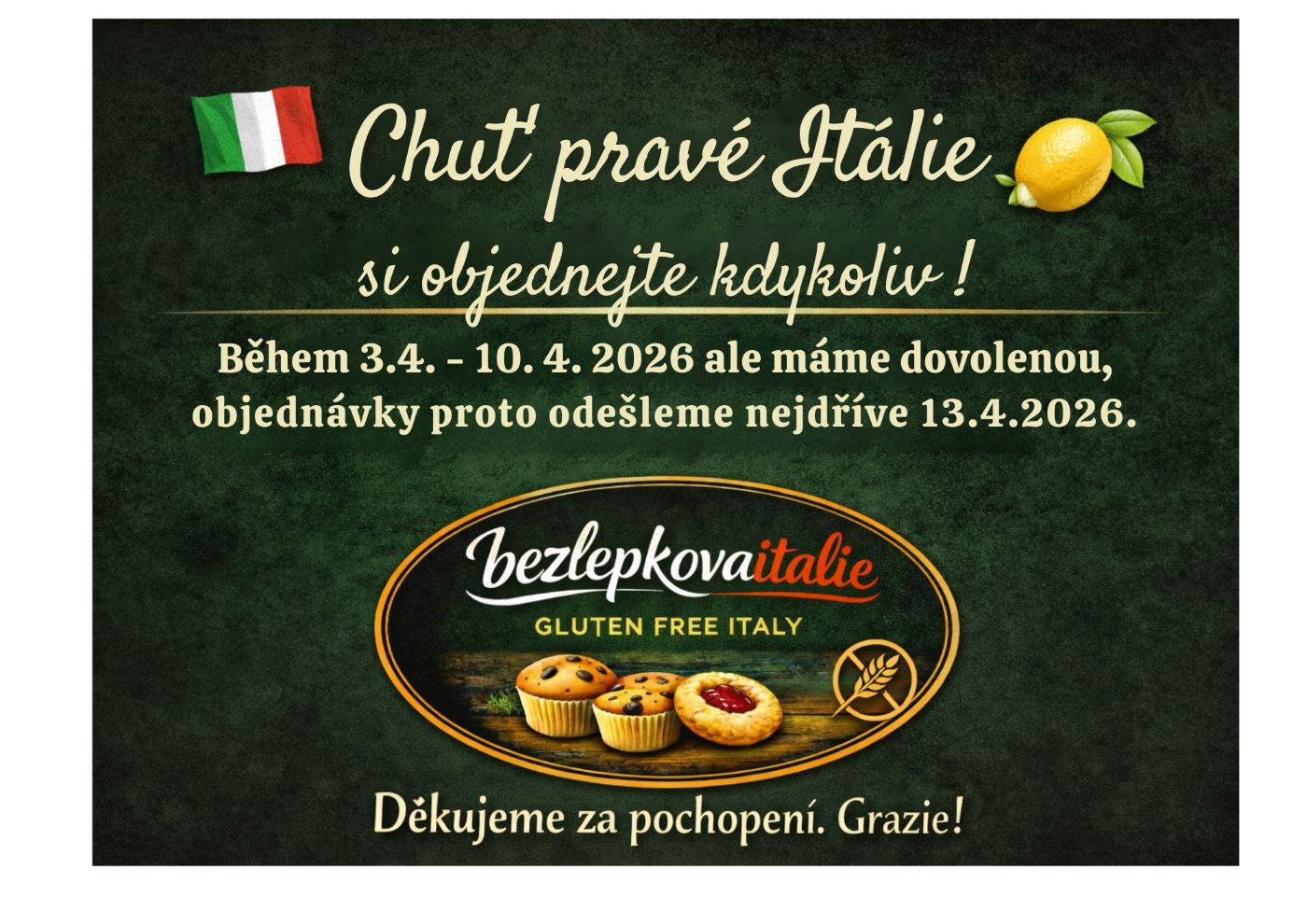 Itálie je symbolem radosti z jídla, jednoduchosti a poctivosti. Spolupracujeme s italskými výrobci, kteří se specializují na bezlepkovou výrobu, rozumí potřebám celiaků a nikdy nezapomínají na chuť.